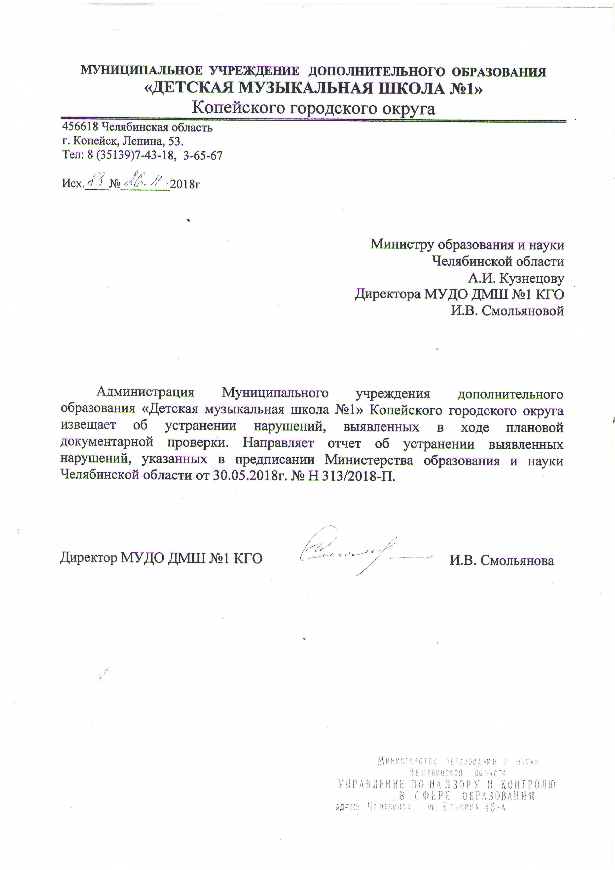 Уведомление об исполнении предписания 2018 г.